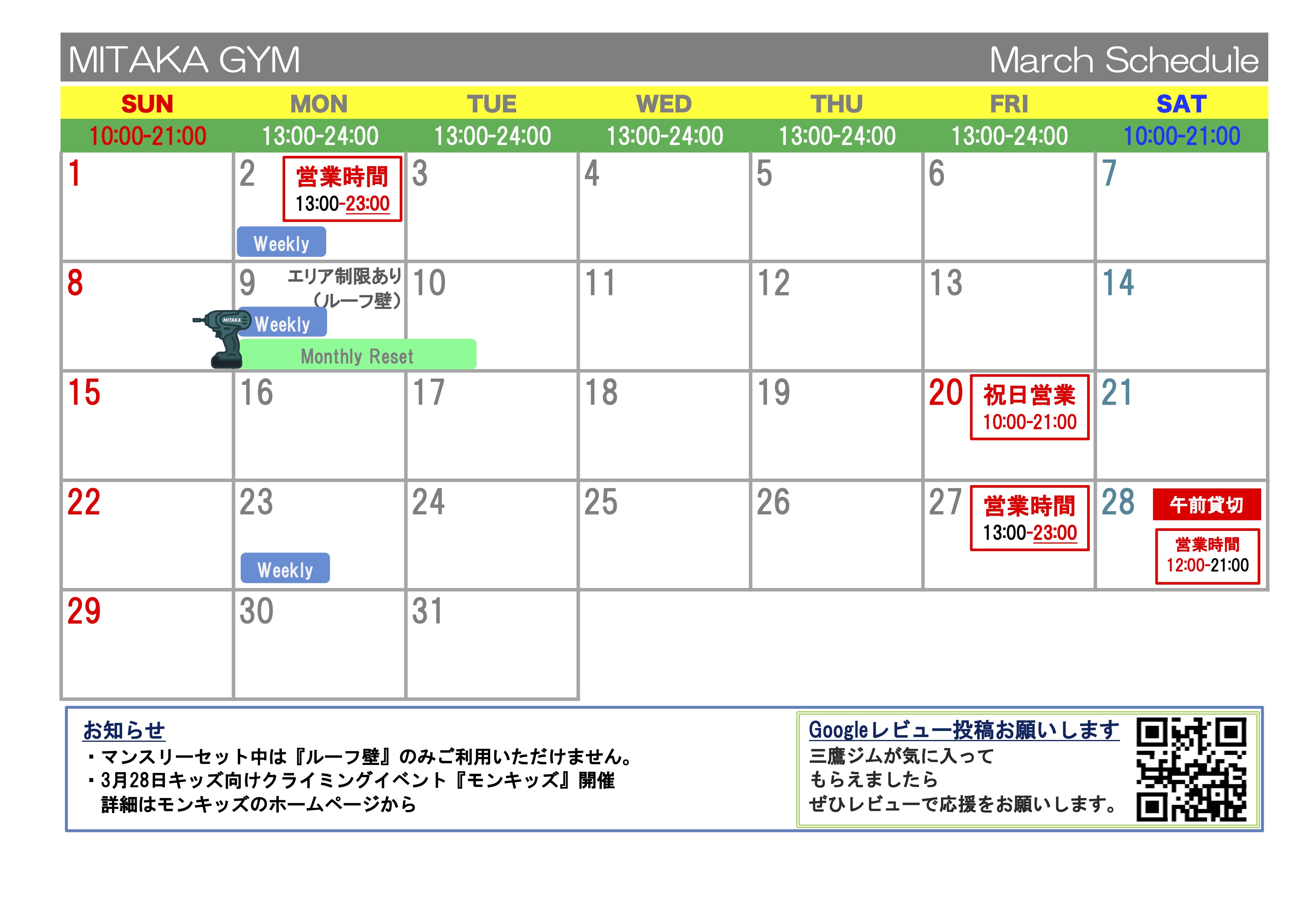 • 3/27(金) 13:00〜23:00クローズ